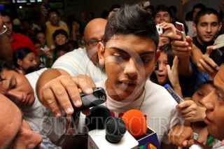 MÉRIDA, YUCATÁN, 16JULIO2011.- El jugador de fútbol Paco Flores, campeón mundial de la selección mexicana Sub 17, a su llegada a la ciudad de Mérida debido a que el equipo mexicano asistirá como invitado de honor al concierto de Shakira. FOTO: FRANCISCO BALDERAS/CUARTOSCURO.COM