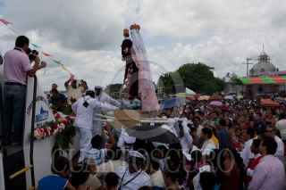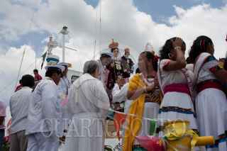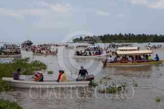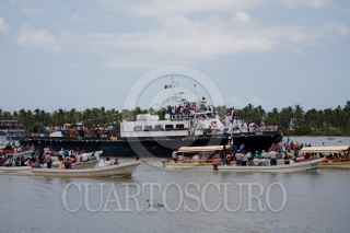PARAISO, TABASCO, 16JULIO2011.- Como cada año cientos de feligreses católicos se congregaron en puerto Chiltepec para honrar a la Virgen del Carmen y realizar el acostumbrado recorrido que da inició en la capilla y concluye con un paseo en lancha por las aguas de la laguna y mar del Golfo de México. Así mismo en el muelle de dicha villa se celebro una misa especial en donde los clérigos pidieron abundante pesca, menos violencia y que no haya inundaciones para el presente año FOTO: MARCO POLO GUZMÁN HERNÁNDEZ/CUARTOSCURO.COM