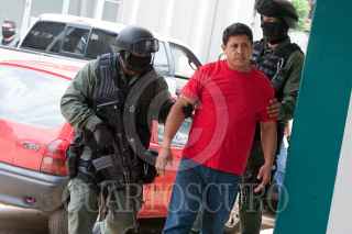 VILLAHERMOSA, TABASCO, 18JULIO2011.- Cuauhtemoc Torres Camacho alias "El Temo" fue presentado en las instalaciones de la Policia Ministerial como presunto secuestrador, y entre sus posesiones se le aseguro un arma tipo escuadra. FOTO: MARCO POLO GUZMAN HERNANDEZ/CUARTOSCURO.COM