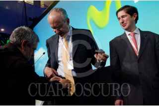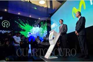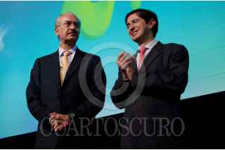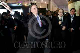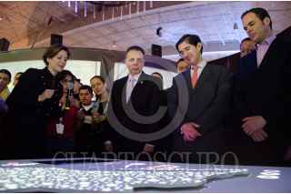 MÉXICO, D.F., 19JULIO2011.- Bruno Ferrari, secretario de Economía durante la inauguración de la tercera edición de Campus Party México que se llevará a cabo del 18 al 24 de Julio de 2011 en el Centro de Exposiciones Bancomer. En la imagen interactua con uno de los stands dedicados a tecnologías multimedias. FOTO: MISAEL VALTIERRA/CUARTOSCURO.COM