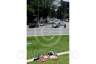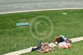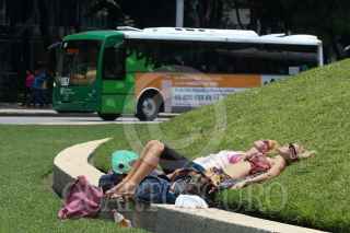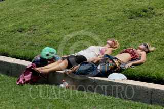 MÉXICO, D.F., 19JULIO2011.- Dos turistas extranjeras disfrutan su estancia en la ciudad asoleándose en la glorieta del Ángel de la Independencia. FOTO: SAÚL LÓPEZ/CUARTOSCURO.COM