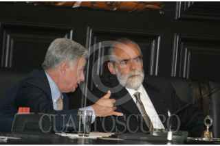 MEXICO, D. F. 30SEPTIEMBRE2004.- El senador Demetrio Sodi conversa con Diego Fernández de Cevallos, presidente de la mesa directiva en la cámara de senadores. FOTO: Nelly Salas/CUARTOSCURO.COM