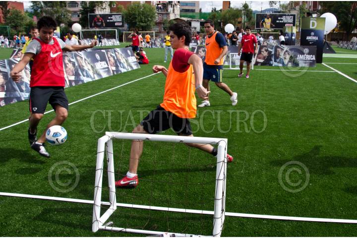 MÉXICO, D.F., 20JULIO2011.- Más de 150 aficionados de las Águilas del América se concentraron para participar en el torneo 3 vs 3 que se realiza en las instalaciones de Coapa. Los 3 primeros lugares del torneo formarían parte de la nueva campaña publicitaria del nuevo uniforme del equipo a presentarse el día de mañana en el Estadio Azteca y un viaje con el equipo en un partido contra el Barcelona FC en Dallas, Texas. FOTOS: MISAEL VALTIERRA/CUARTOSCURO.COM