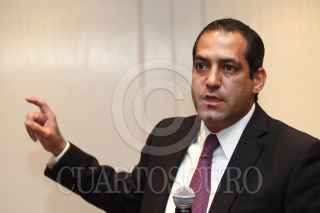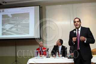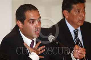 MÉXICO, D.F., 21JULIO2011.- Ignacio López,, director de la empresa I.I.I. Servicios, durante una conferencia de prensa que ofreció para dar detalles sobre la construcción de la Estela de Luz que debió haber estado lista para los festejos del Bicentenario en septiembre del 2010. Este proyecto tiene un avance general de 53 por ciento y el costo total será de mil 036 460 millones de pesos, la cual estará ubicada a la entrada del Bosque de Chapultepec, con una estructura de 104 metros de altura. FOTO: RODOLFO ANGULO/CUARTOSCURO.COM