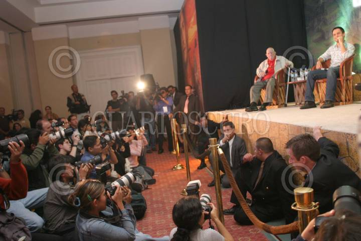 MEXDF30SEP2004.- Con medidas de seguridad y numerosos medios de comunicación se llevó a cabo la conferencia de prensa de la película "Diarios de un motociclista" con la presencia de los actores Gael Gacía, Rodrigo de la Serna y el director brazileño Walter Salles. FOTO: Eunice Adorno/CUARTOSCURO.COM