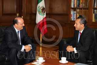 MEXICO,D.F.,21JULIO2011.- Cesar Duarte, Gobernador del estado de Chiuahua junto a Francisco Blake Mora, Secretario de Gobernacion durante la reunion que sostuvieron el dia de hoy. FOTO: CUARTOSCURO.COM