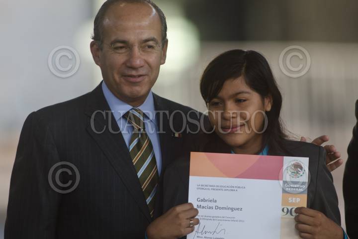 MÉXICO, D.F., 21JULIO2011.- Felipe Calderón Hinojosa, presidente de México, encabezó la entrega de reconocimientos del Concurso de la Olimpiada del Conocimiento Infantil 2011. Ésto se realizó en el Museo Nacional de Antropología e Historia. FOTO: MISAEL VALTIERRA/CUARTOSCURO.COM