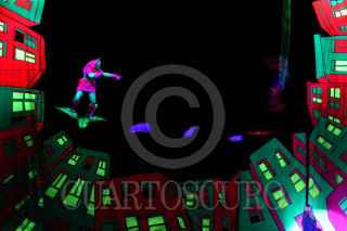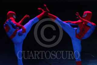 SAN ANDRES CHOLULA, PUEBLA, 21JULIO2011.- Se presentó en el Auditorio Siglo XXI, la obra de "El Hombre Araña, Acción y Aventura", dirigida por Leandro Panetta y protagonizada por los actores Gastón Ricaud (Hombre Araña), Alejandro Zanga (Duende Verde), y Lorena Zaizar (Mary Jane Watson). Con variados cambios de escenografía y acrobacias, relatan la historia del conocido super héroe de Marvel Comics y su incanzable esfuerzo por combatir el mal. FOTO: FRANCISCO GUASCO/CUARTOSCURO.COM