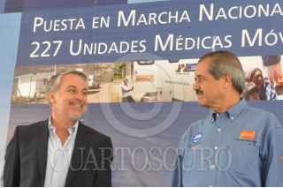 GUADALAJARA, JALISCO, 22JULIO2011.- José Ángel Cordoba Villalobos, secretario de Salud en compañía de Emilio González, gobernador del estado pusieron en marcha nacional 227 unidades medicas del programa "Caravanas de la Salud" que llevarán consultas medicas a las poblaciones mas alejadas. FOTO: EDUARDO MORALES/CUARTOSCURO.COM