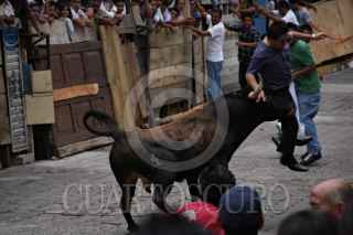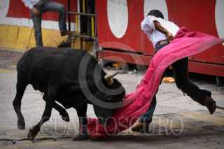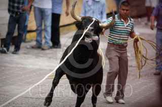 XICO, VERACRUZ, 22JULIO2011.- Este día se llevó a cabo la tradicional Xiqueñada, en donde valientes ciudadanos salieron a la calle principal a torear y corretear 6 bestias de lidia, mientras que cientos de personas observaron desde la baranda en el marco de las fiestas patronales de la Virgen María Magdalena. Autoridades informaron que cuatro personas resultaron lesionadas. FOTO: FÉLIX MÁRQUEZ/CUARTOSCURO.COM