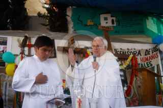 MÉXICO, D.F., 25JULIO2011.- Raúl Vera, obispo de Saltillo, ofició una misa con motivo del primer aniversario del "movimiento 26 de Julio", el cuál busca impedir la construcción de la Supervía Poniente que unirá el poniente con el sur de la ciudad. FOTO: IVÁN STEPHENS/CUARTOSCURO.COM