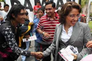 MÉXICO, D.F., 25JULIO2011.- Esthela Damián Peralta presidenta de la Comisión de Vigilancia de la Cámara de Diputados, realizó un recorrido, realizó un acto público en la zona de la Merced, donde repartieron volantes con información para erradicar la violencia contra las mujeres y la trata de personas. FOTO: SAÚL LÓPEZ/CUARTOSCURO.COM