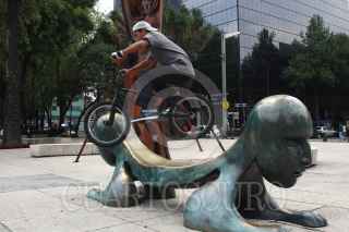 MÉXICO D.F., 26JULIO2011.- Un joven aprovecha la temporada vacacional para salir con su bicicleta a la calle para realizar diversos trucos callejeros FOTO: SAÚL LÓPEZ/CUARTOSCURO.COM