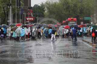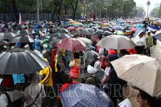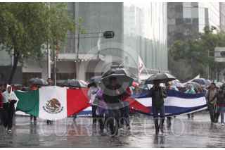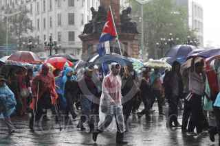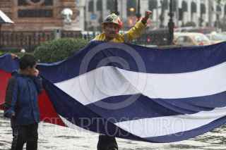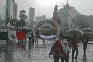 MÉXICO, D.F., 26JULIO2011.- Con motivo del Aniversario al Asalto del Cuartel Moncada, hecho que significo el triunfo de la Revolución Cubana hace 58 años, cientos de personas realizaron una marcha en solidaridad con Cuba que partió del Hemiciclo a Juárez rumbo a la embajada de Estados Unidos. Los manifestantes caminaron por avenida reforma sin importar las inclemencias de la lluvia. FOTO: DIEGO SIMÓN SÁNCHEZ/CUARTOSCURO.COM