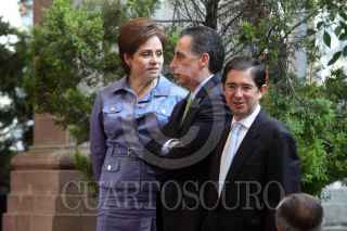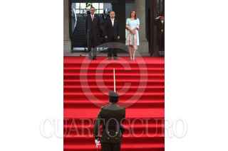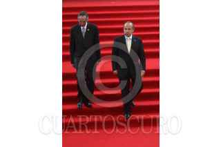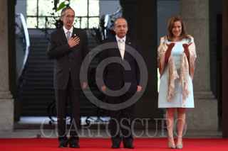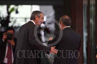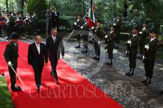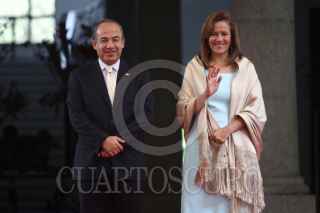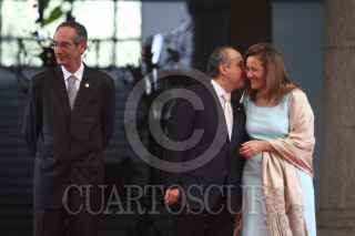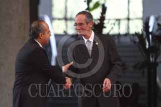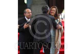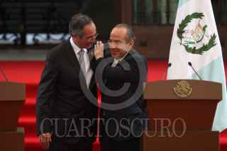 MÉXICO, D.F., 27JULIO2011.- Alvaro Colom, presidente de Guatemala y el presidente Felipe Calderón al termino de un mensaje a los medios de comunicación que se realizo en las escalinatas de las residencia oficial de Los Pinos. FOTO: RODOLFO ANGULO/CUARTOSCURO.COM