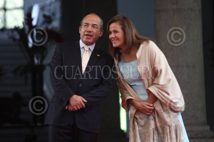 MÉXICO, D.F., 27JULIO2011.- Alvaro Colom, presidente de Guatemala y el presidente Felipe Calderón al termino de un mensaje a los medios de comunicación que se realizo en las escalinatas de las residencia oficial de Los Pinos. FOTO: RODOLFO ANGULO/CUARTOSCURO.COM