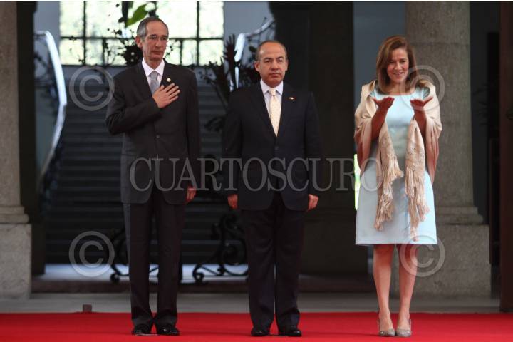 MÉXICO, D.F., 27JULIO2011.- Alvaro Colom, presidente de Guatemala y el presidente Felipe Calderón al termino de un mensaje a los medios de comunicación que se realizo en las escalinatas de las residencia oficial de Los Pinos. FOTO: RODOLFO ANGULO/CUARTOSCURO.COM