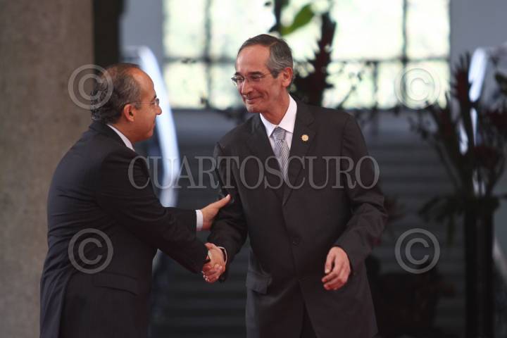 MÉXICO, D.F., 27JULIO2011.- Alvaro Colom, presidente de Guatemala y el presidente Felipe Calderón al termino de un mensaje a los medios de comunicación que se realizo en las escalinatas de las residencia oficial de Los Pinos. FOTO: RODOLFO ANGULO/CUARTOSCURO.COM