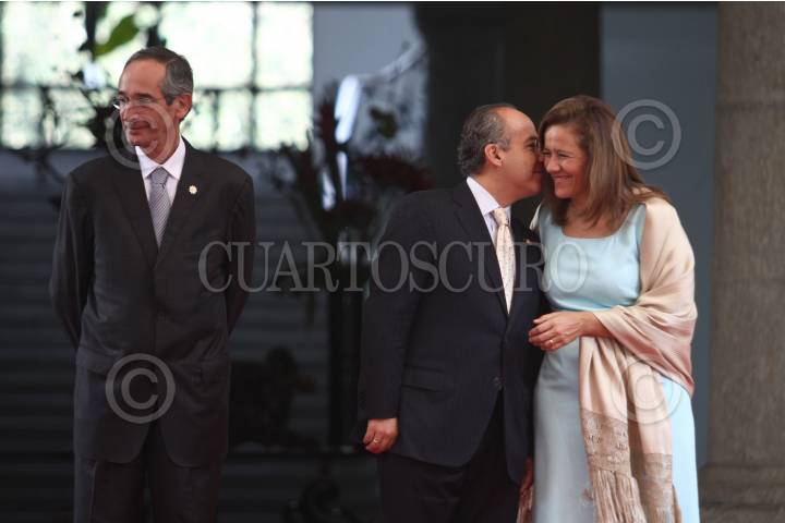 MÉXICO, D.F., 27JULIO2011.- Alvaro Colom, presidente de Guatemala y el presidente Felipe Calderón al termino de un mensaje a los medios de comunicación que se realizo en las escalinatas de las residencia oficial de Los Pinos. FOTO: RODOLFO ANGULO/CUARTOSCURO.COM