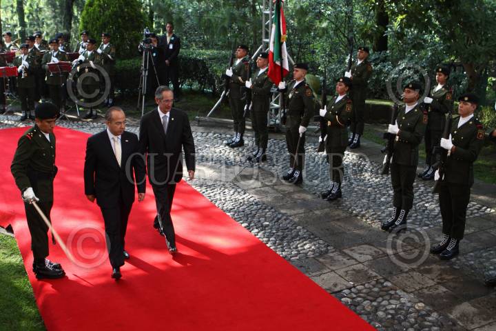 MÉXICO, D.F., 27JULIO2011.- Alvaro Colom, presidente de Guatemala y el presidente Felipe Calderón al termino de un mensaje a los medios de comunicación que se realizo en las escalinatas de las residencia oficial de Los Pinos. FOTO: RODOLFO ANGULO/CUARTOSCURO.COM