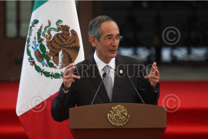 MÉXICO, D.F., 27JULIO2011.- Alvaro Colom, presidente de Guatemala y el presidente Felipe Calderón al termino de un mensaje a los medios de comunicación que se realizo en las escalinatas de las residencia oficial de Los Pinos. FOTO: RODOLFO ANGULO/CUARTOSCURO.COM