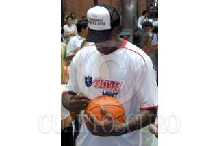 MONTERREY, NUEVO LEON 08OCTUBRE2004 El basquetbolista Dennis Rodman, durante la conferencia de prensa, donde se anuncio que reforzara al equipo mexicano Fuerza Regia, que participa en la Liga Nacional de Baloncesto Profesional. FOTO: Jorge López/CUARTOSCURO.COM