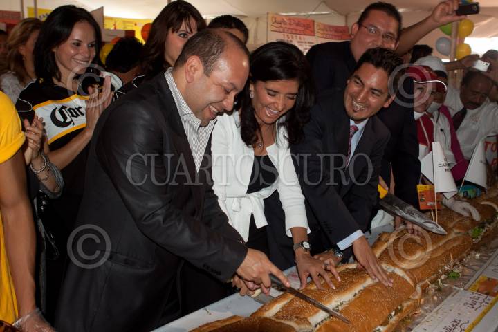 MÉXICO, D.F., 27JULIO2011.- Torteros de la delegación Venustiano Carranza prepararon la torta más grande mundo la cual midió 50 metros en solo unos minutos. Este alimento típico fue elaborado con diferentes ingredientes y repartida en aproximadamente 15 minutos, esto como parte de las actividades de la inauguración de la 8va Feria de la Torta que se celebra en el explanada de la delegación mencionada. FOTO: MOISÉS PABLO/CUARTOSCURO.COM