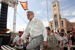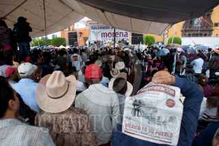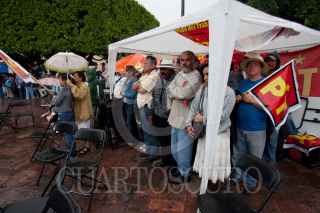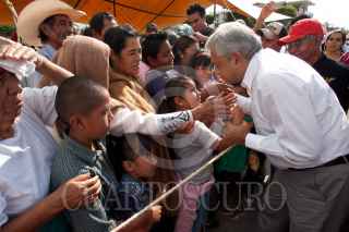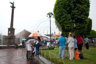 SAN JUAN DEL RIO, QUERÉTARO, 27JULIO2011.- A pesar del fuerte aguacero, Andrés Manuel López Obrador, excandidato a la presidencia de la república y dirigente del movimiento MORENA, se reunió en un mitin informativo con habitantes del municipio de San Juan del Rio. FOTO: DEMIAN CHÁVEZ/CUARTOSCURO.COM