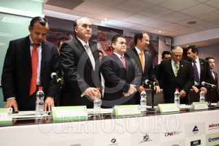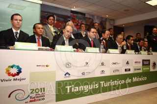 MÉXICO, D.F., 28JULIO2011.- Mario Sánchez Ruiz, presidente del Consejo Coordinador Empresarial y Miguel Torruco, presidente de la Confederación Nacional Turística en conferencia de prensa dieron a conocer que Riviera Nayarit-Puerto Vallarta, será la nueva cede del tianguis turístico itinerante 2012, así anunciaron que para el año 2013 la sede será la ciudad de Puebla y en 2014 lo realizarán en conjunto Riviera Maya-Cancún, en Quintana Roo. FOTO: SAÚL LÓPEZ/CUARTOSCURO.COM