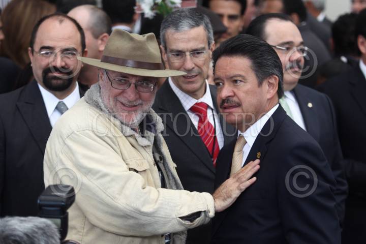 MÉXICO, D.F., 28JULIO2011.- El poeta Javier Sicilia saluda al senador Manlio Fabio Beltrones al termino del encuentro entre el Movimiento por la Paz con Justicia y Dignidad con legisladores de la comisión permanente del Congreso de la Unión en una reunión que se celebró en el Alcázar del Castillo de Chapultepec. FOTO: RODOLFO ANGULO/CUARTOSCURO.COM