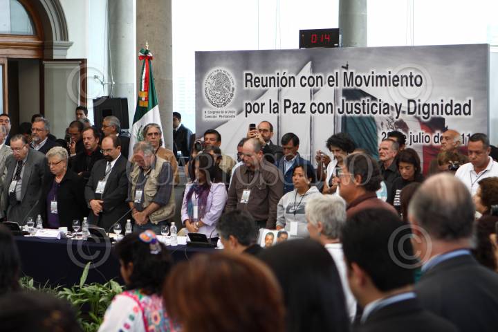MÉXICO, D.F., 28JULIO2011.- El poeta Javier Sicilia saluda al senador Manlio Fabio Beltrones al termino del encuentro entre el Movimiento por la Paz con Justicia y Dignidad con legisladores de la comisión permanente del Congreso de la Unión en una reunión que se celebró en el Alcázar del Castillo de Chapultepec. FOTO: RODOLFO ANGULO/CUARTOSCURO.COM