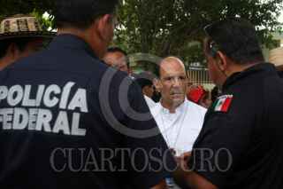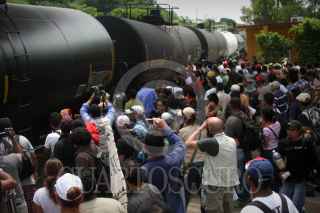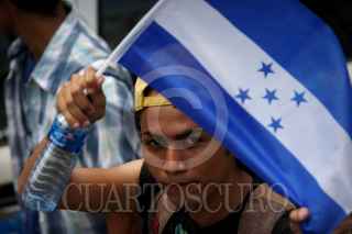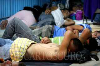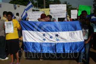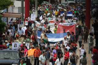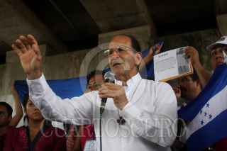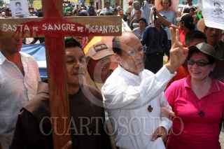 COATZACOALCOS, VERACRUZ., 29JULIO2011.- Cientos de migrantes centroamericanos recorrieron las principales calles de esta ciudad, acompañados del sacerdote defensor, Alejandro Solalinde Guerra, en donde exigieron a las autoridades de los tres niveles de gobierno y a la delincuencia organizada frenaran las agresiones y secuestros en su contra, la protesta se llevó a cabo en el marco de la caminata Paso a Paso por la Paz. FOTO: FÉLIX MÁRQUEZ/CUARTOSCURO.COM