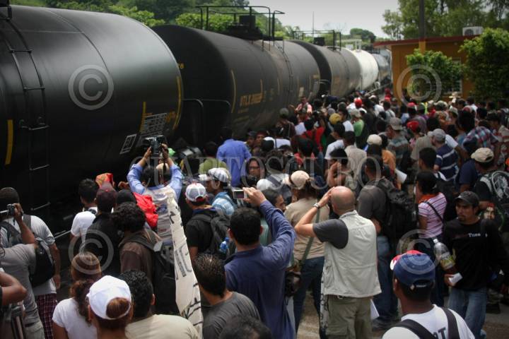 COATZACOALCOS, VERACRUZ., 29JULIO2011.- Cientos de migrantes centroamericanos recorrieron las principales calles de esta ciudad, acompañados del sacerdote defensor, Alejandro Solalinde Guerra, en donde exigieron a las autoridades de los tres niveles de gobierno y a la delincuencia organizada frenaran las agresiones y secuestros en su contra, la protesta se llevó a cabo en el marco de la caminata Paso a Paso por la Paz. FOTO: FÉLIX MÁRQUEZ/CUARTOSCURO.COM