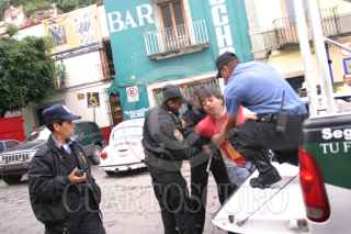 Guanajuato, Guanajuato,09OCT2004.- Elementos de seguridad del este estado se llevan a una persona en estado de briedad en las calles del centro en donde se lleva las actividades del 32 festival Cervantino. FOTO:Eunice Adorno–CUARTOSCURO.COM