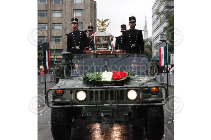 MÉXICO, D.F., 30JULIO2011.- Un cortejo fúnebre trasladó los restos mortales de los Héroes de la Independencia: Miguel Hidalgo, Ignacio Allende, Juan Aldama, Mariano Jiménez, José María Morelos, Nicolás Bravo, Vicente Guerrero, Guadalupe Victoria y Leona Vicario, entre otros, de Palacio Nacional al Ángel de la Independencia en donde descansarán de nuevo en el mausoleo del Ángel, que fue remodelado y acondicionado. FOTO: ALFREDO GUERRERO/CUARTOSCURO.COM