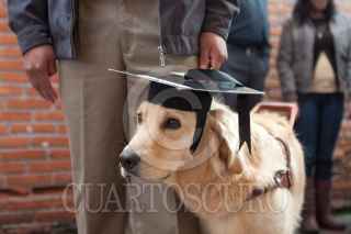 MÉXICO, D.F., 30JULIO2011.- En la escuela para entrenamiento para perros guía para ciegos IAP, se realizó la primera graduación de perros guías para personas invidentes. Los caninos son entrenados por tres semanas en el manejo del que será su perro guía, las pruebas a superar son; la caminata en la calle, caminata en la banqueta, libramiento de puerta, esquivamiento de ramas de los árboles, cruzado de calles. El invidente tiene que hospedarse durante 28 días en los cuales se le asigna un compañero canofilo y cuando se concluye el entrenamiento se le entrega en comodato por el tiempo que requiera. El costo de recuperación es de 8 mil 200 pesos, que incluye su capacitación, alimentación, y hospedaje, aunque el costo real de un perro es de 200 mil pesos. FOTO: MOISÉS PABLO/CUARTOSCURO.COM