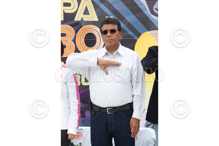 MÉXICO, D.F., 30JULIO2011.- Manuel González González, delegado de Xochimilco, y Gerardo Villanueva, titular del Instituto del Deporte del Distrito Federal, pusieron en marcha la "Copa de Fútbol de la Ciudad de México" en el Deportivo de Xochimilco. En esta edición se contará con la participación de 320 equipos, 256 varoniles y de 64 femeniles, que suman más de 5, 000 mil jugadores. FOTO: MOISÉS PABLO/CUARTOSCURO.COM