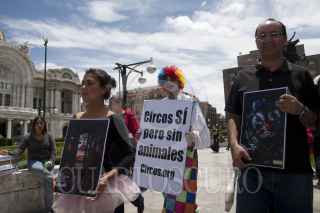 MÉXICO D.F., 31JULIO2011.- A las afueras del Palacio de Bellas Artes, integrantes de Anima Naturalis, se manifestaron con fotografías de animales pintados como si fueran payasos para exigir el respeto a los animales y en contra de uso de los animales en los circos. FOTO: GUILLERMO PEREA/CUARTOSCURO.COM