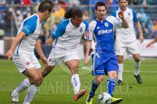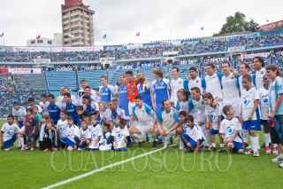 MÉXICO, D.F., 31JULIO2011.- Guapas edecanes animaron a la afición que acudió al estadio Azul, donde se realizó el partido amistoso "Messi and Friends", el cual que terminó 5-4 en favor del equipo de Leonel Messi. FOTO: ISAAC ESQUIVEL/CUARTOSCURO.COM