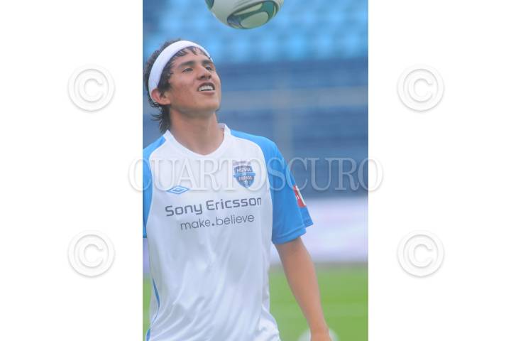 MÉXICO, D.F., 31JULIO2011.- El jugador del Barcelona, Lionel Messi, disputó un encuentro amistoso la tarde de hoy en el estadio azul con motivo de la recaudación de fondos para la fundación Messi y se denominó, Messi and Frends vs. Estrellas del Mundo y que reunió a estrellas como Romario, Martín Palermo, Dunga y Emmerson. FOTO: FRANCISCO RODRÍGUEZ/CUARTOSCURO.COM