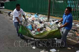 MÉXICO, D.F., 01AGOSTO2011.- Utilizan como basurero la banqueta de la esquina del eje 5 Oriente y la calle de Marcelino Buendía en la colonia Renovación en la delegación Iztapalapa. Trabajadores de limpia diariamente alzan la basura y denunciaron que recolectores clandestinos tiran los desechos durante la madrugada, sin que autoridades delegacionales y de Seguridad Pública no tomen cartas en el asunto. FOTO: SAÚL LÓPEZ/CUARTOSCURO.COM