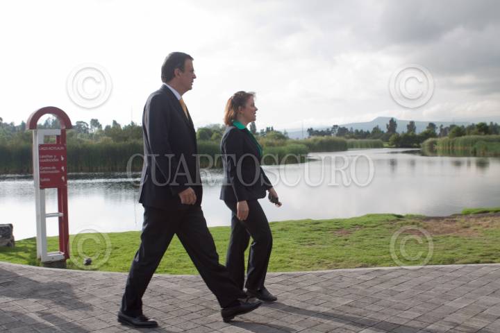 MÉXICO, D.F. 02AGOSTO2011.- Martha Delgado, secretaria del Medio Ambiente, Marcelo Ebrard Casaubón, Jefe de Gobierno, Alejandra Moreno Toscano, autoridad del Centro Histórico del DF, y María Rosa Márquez Cabrera, secretaria de Desarrollo Rural y equidad para las Comunidades, al finalizar el anuncio de las acciones para la protección ambiental, ecológica y social del patrimonio natural y cultural de Xochimilco, Tláhuac y Milpa Alta, que se llevó a cabo en la reserva natural de Cuemanco. FOTO: MOISÉS PABLO/CUARTOSCURO.COM