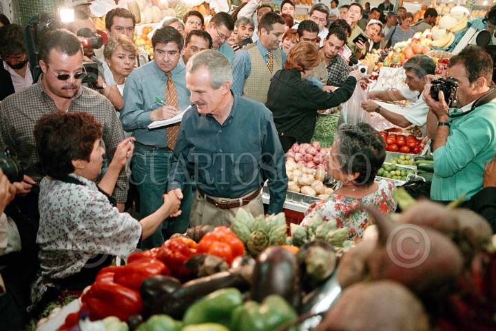 El candidato del PRI a la presidencia de la republica Francisco Labastida visito el mercado de San Juan, donde expuso el apoyo del tricolor en el impulso de una nueva ley de mercados publicos , donde los locatarios seran los beneficiados.