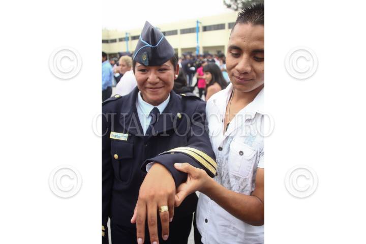 MÉXICO, D.F., 03AGOSTO2011.- Le propusieron matrimonio a Sonia del Carmen cadete de la generación 180 al finalizar la ceremonia de graduación como policía en el Centro de Formación Policial de la SSP-DF. FOTO: SAÚL LÓPEZ/CUARTOSCURO.COM