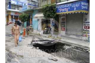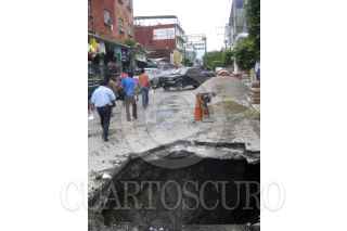 CHILPANCINGO, GUERRERO., 03AGOSTO2011.- Un enorme hundimiento de al menos 5 metros de profundidad, se registro esta tarde sobre la avenida Alemán, donde se llevan a cabo los trabajos de introducción de la nueva tubería para drenaje, en la zona no fue colocado ningún tipo de señalamiento para evitar algún accidente. FOTO: OSCAR ALVARADO/CUARTOSCURO.COM