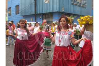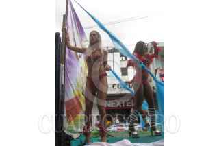 CHILPANCINGO, GUERRERO, 03AGOSTO2011.- Aspectos de la cabalgata que desfiló por las principales calles y avenidas de la ciudad capital, la tarde-noche de este miércoles en la vispera de que sea inaugurado el sexto Festival del Pozole y el Mezcal, los cuales son la comida y bebida tradicional del estado. Cabe mencionar que este sera inaugurado mañana jueves por parte de las autoridades municipales y estatales, en la cabalgata sobresalió la presencia de bailarinas brasileiras las cuales causaron expectación y algarabía entre la ciudadania que salió a observar el paso de los contigentes participantes. FOTO: OSCAR ALVARADO/CUARTOSCURO.COM