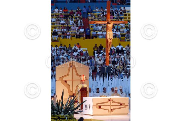 GUADALAJARA, JALISCO 10OCTUBRE2004.- Con motivo del inicio del XLVIII Congreso Eucarístico, se replicaron las campanas de todas las iglesias de la ciudad para dar la bienvenida de los asistentes al evento religioso. Decenas de personas apludieron por varios minutos. FOTO: Germán Romero/CUARTOSCURO.COM