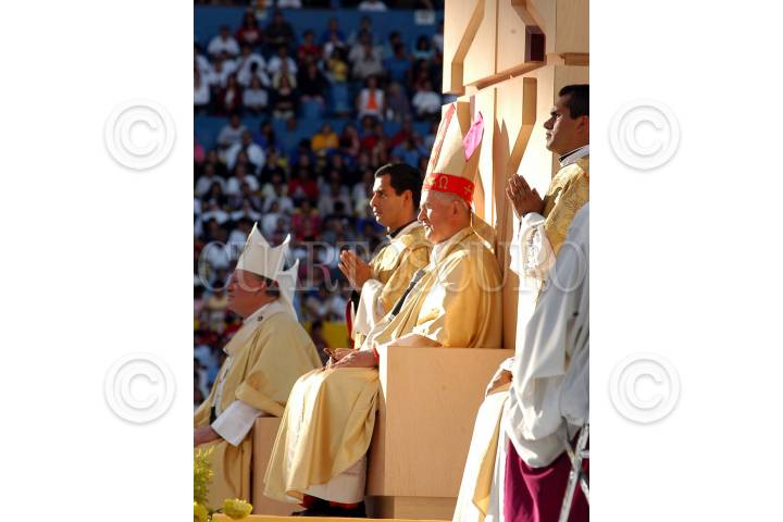 GUADALAJARA, JALISCO 10OCTUBRE2004.- Con motivo del inicio del XLVIII Congreso Eucarístico, se replicaron las campanas de todas las iglesias de la ciudad para dar la bienvenida de los asistentes al evento religioso. Decenas de personas apludieron por varios minutos. FOTO: Germán Romero/CUARTOSCURO.COM