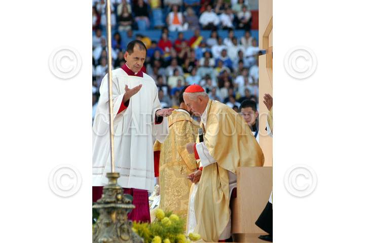 GUADALAJARA, JALISCO 10OCTUBRE2004.- Con motivo del inicio del XLVIII Congreso Eucarístico, se replicaron las campanas de todas las iglesias de la ciudad para dar la bienvenida de los asistentes al evento religioso. Decenas de personas apludieron por varios minutos. FOTO: Germán Romero/CUARTOSCURO.COM