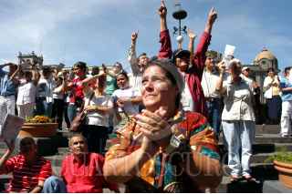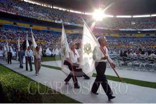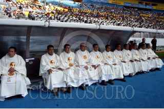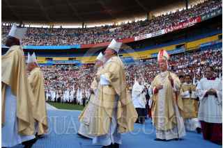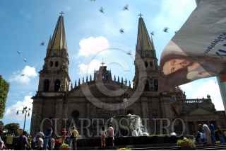 GUADALAJARA, JALISCO 10OCTUBRE2004.- Con motivo del inicio del XLVIII Congreso Eucarístico, se replicaron las campanas de todas las iglesias de la ciudad para dar la bienvenida de los asistentes al evento religioso. Decenas de personas apludieron por varios minutos. FOTO: Germán Romero/CUARTOSCURO.COM